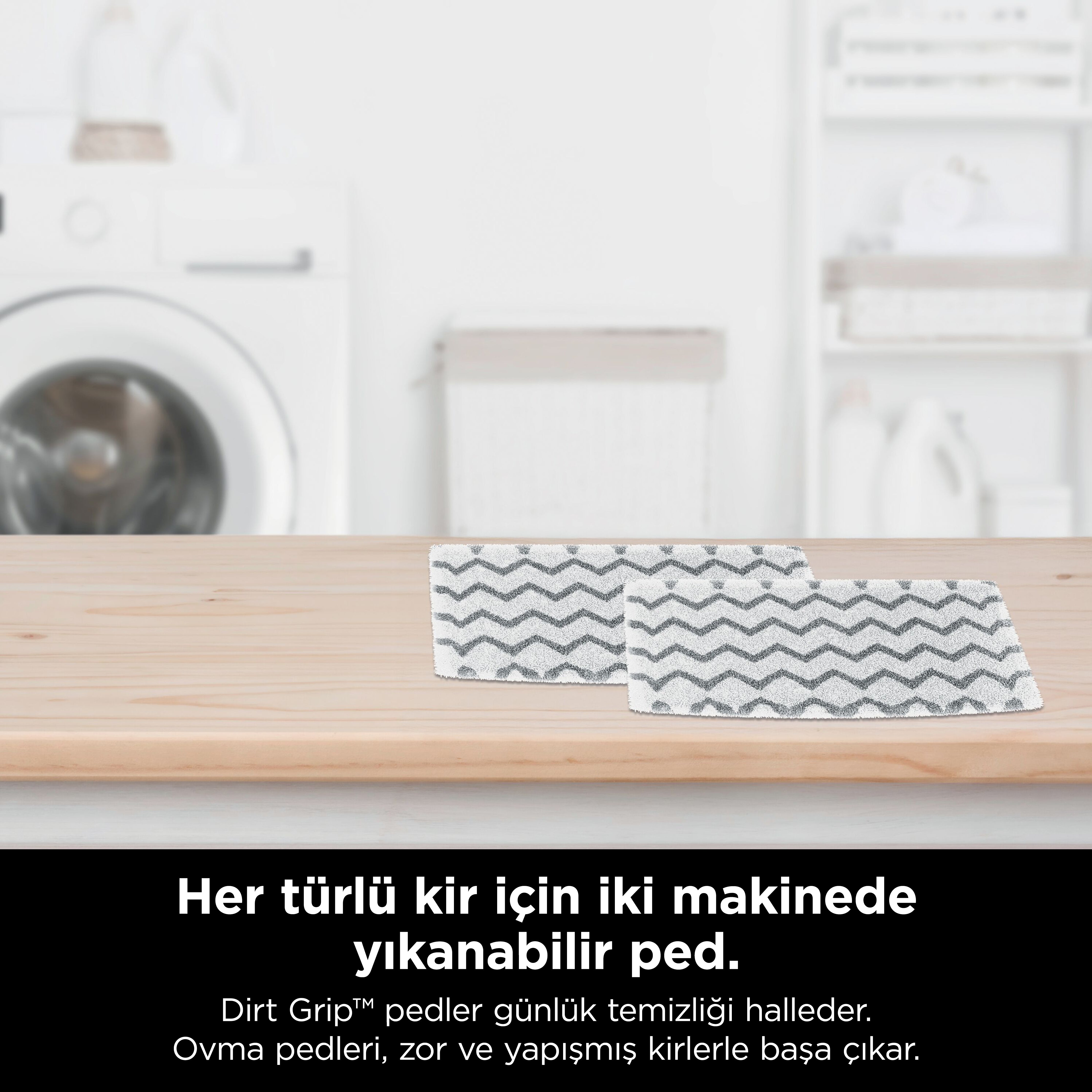Tek kullanımlık pahalı bezlere gerek yok. Shark’ın mikrofiber, emici ve hızlı kuruyan Dirt Grip Soft Scrub temizlik pedleri makinede yıkanabilir ve tekrar tekrar kullanılabilir.