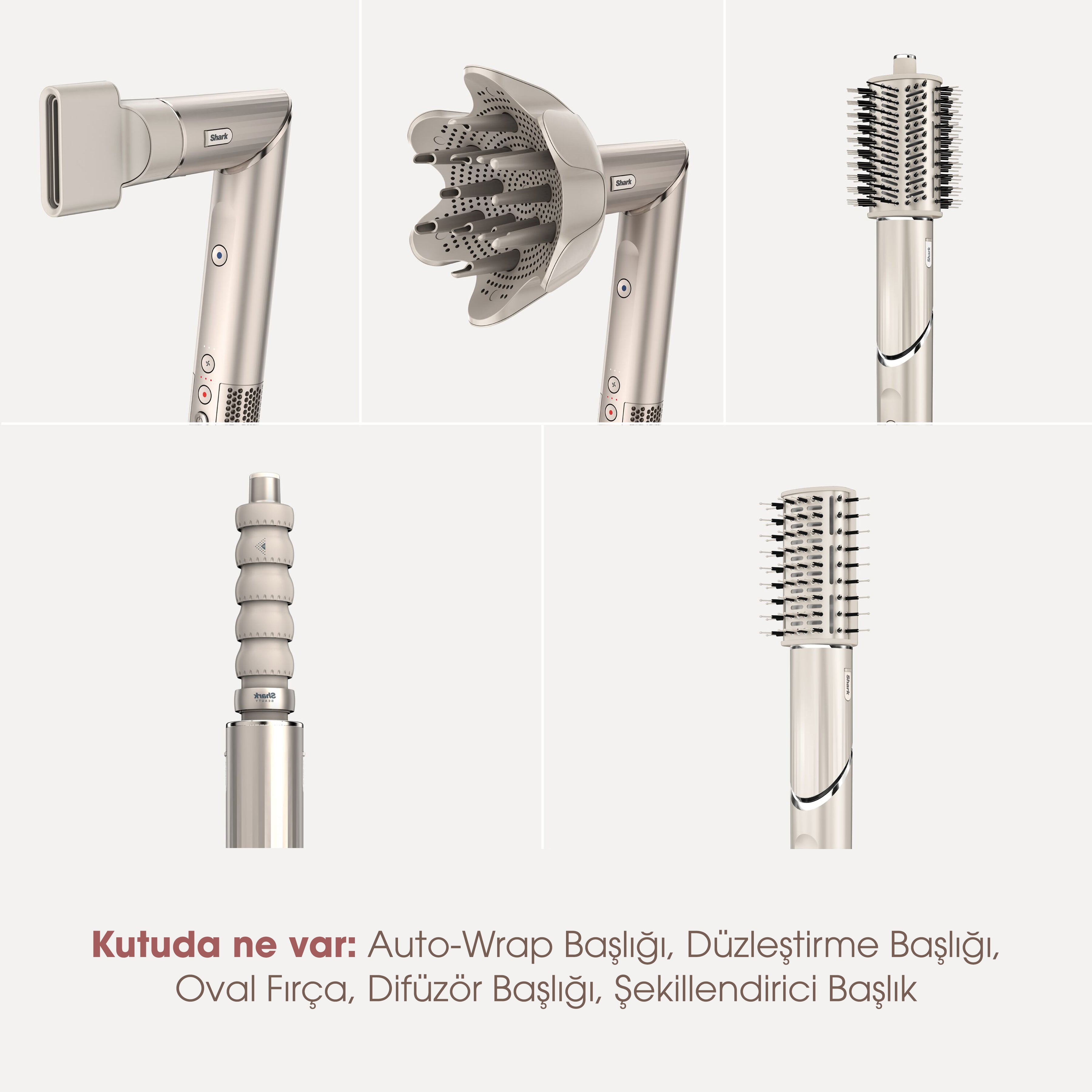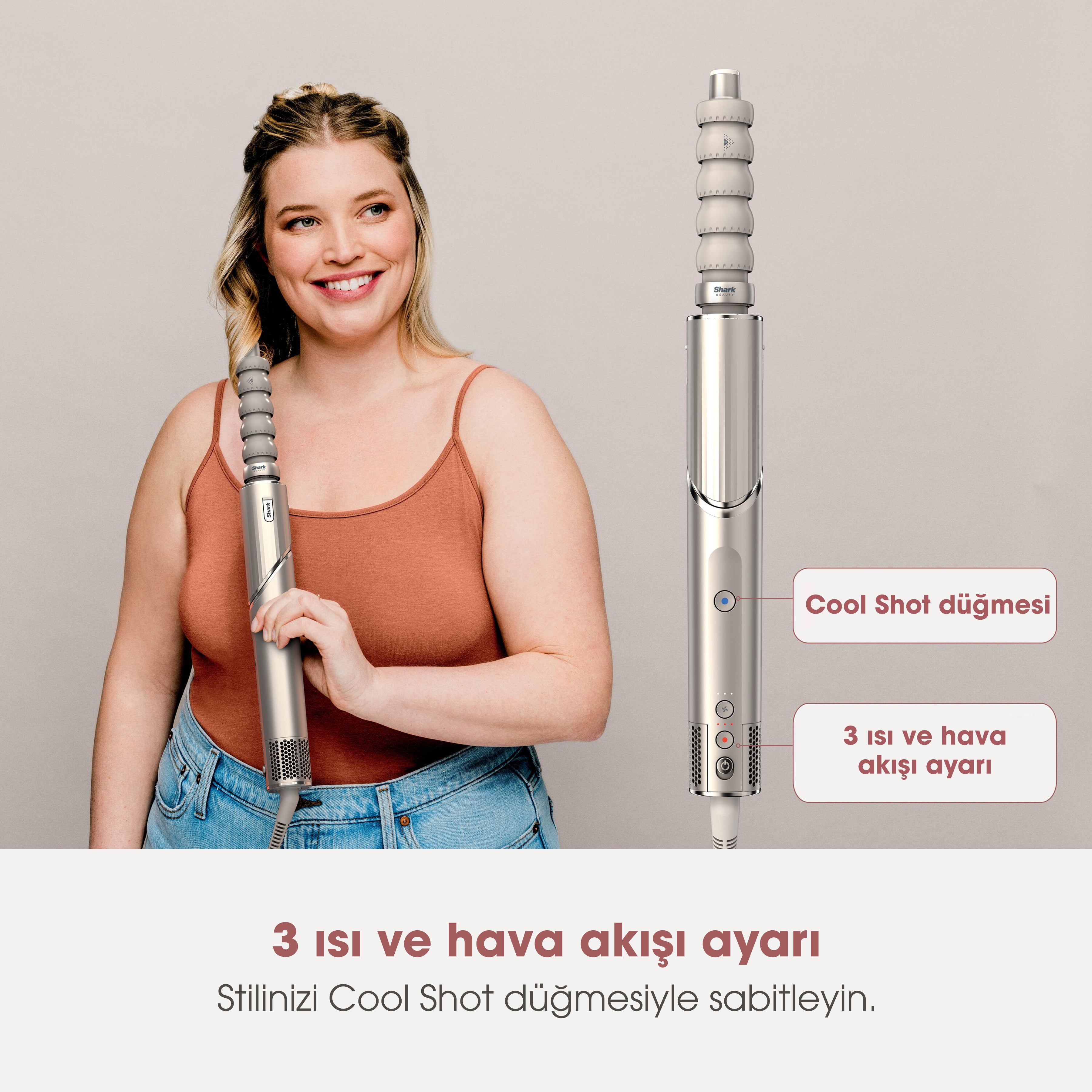 Otomatik Sarımlı Bukle Maşası (Auto-Wrap Başlık): Coanda Teknolojisi, saçı gövde etrafına sarmak için hava gücünü kullanarak otomatik olarak sarar ve kıvırır. Tutamlara ayırdığınız saçınızı maşa başlığına yakınlaştırdığınızda özel teknolojisi saçınızı otomatik olarak sarar ve saniyeler içinde kusursuz bukleler oluşturur. İki ayrı bukle maşası ile saçlarınızı her iki yönde de kıvırarak yüzünüzü simetrik olarak çerçeveleyen bir görünüm elde edin.