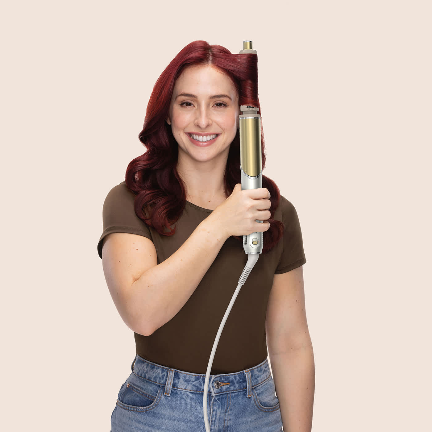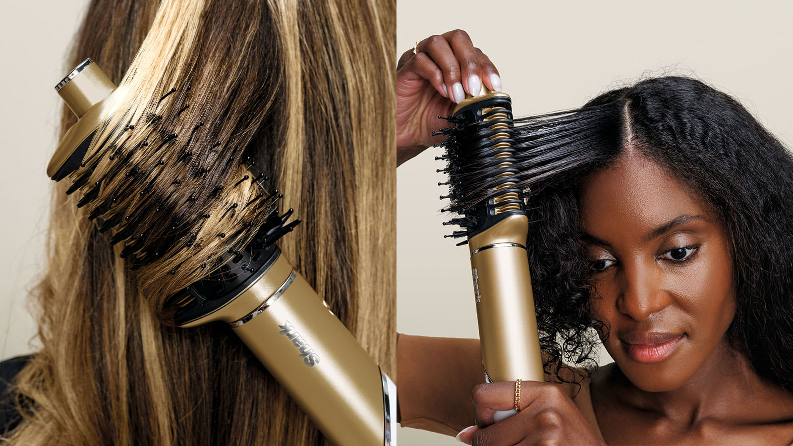 Zarif altın rengi tasarımıyla Shark Glam Multi-Styler hem şık hem de işlevsel.